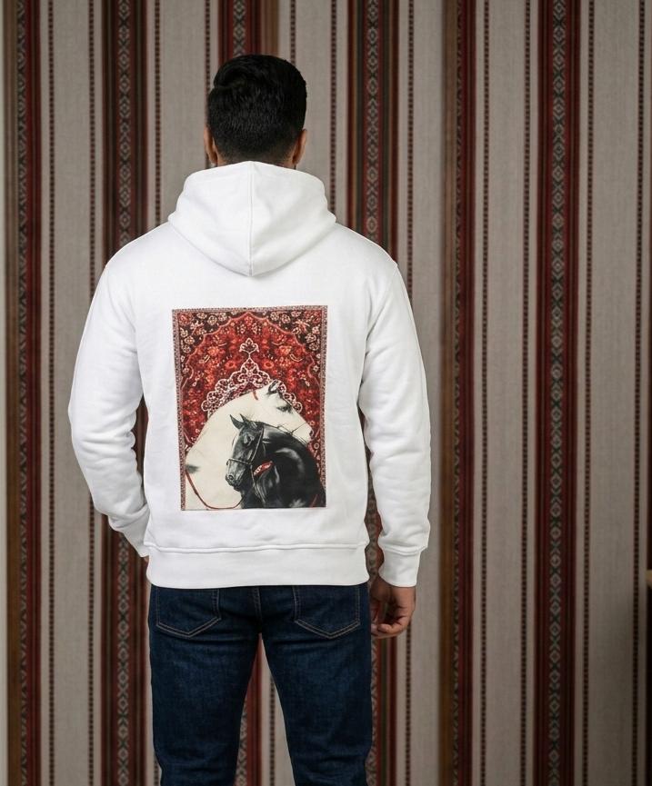 Hoodie Over Size horse black and white